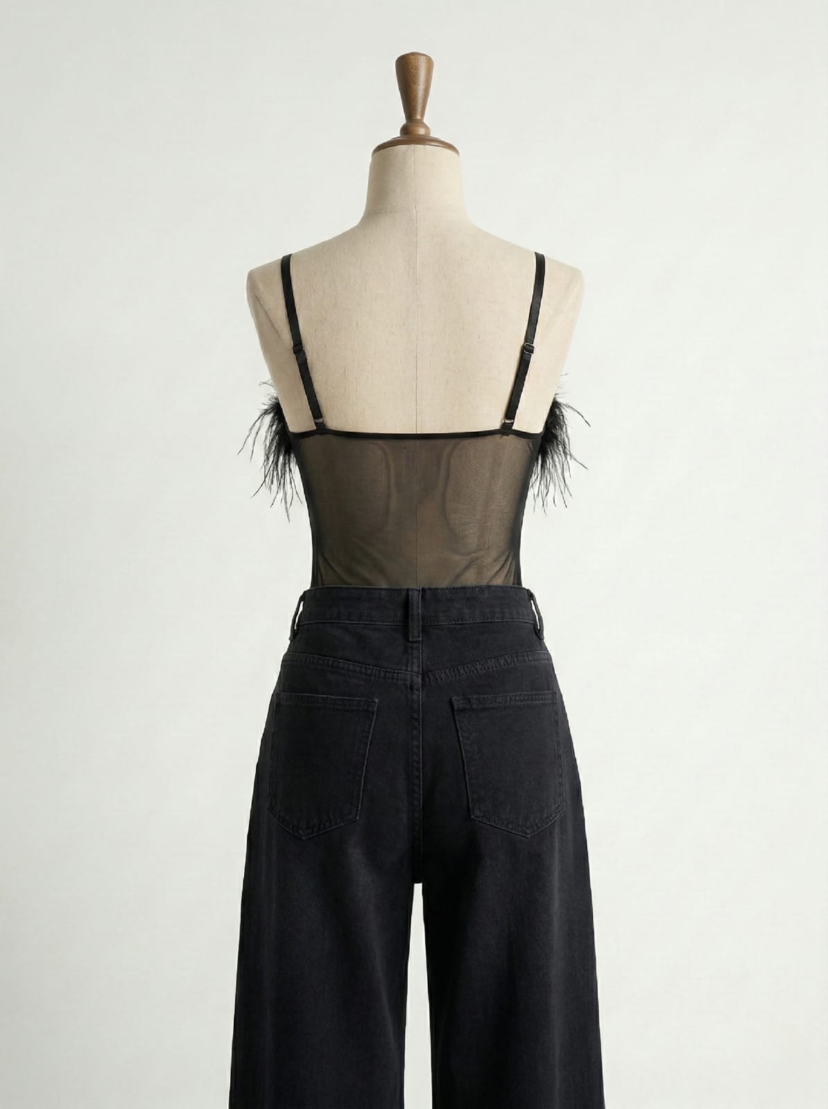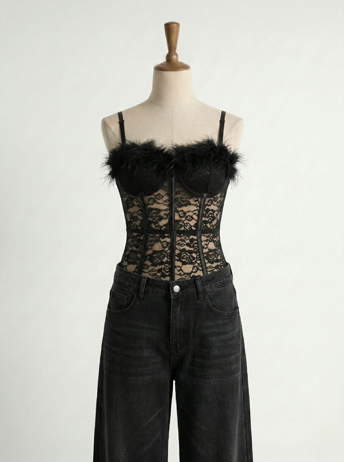 Body de encaje con detalle pelito en la parte delantera Composición: 95% poliéster / 5% elastano