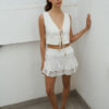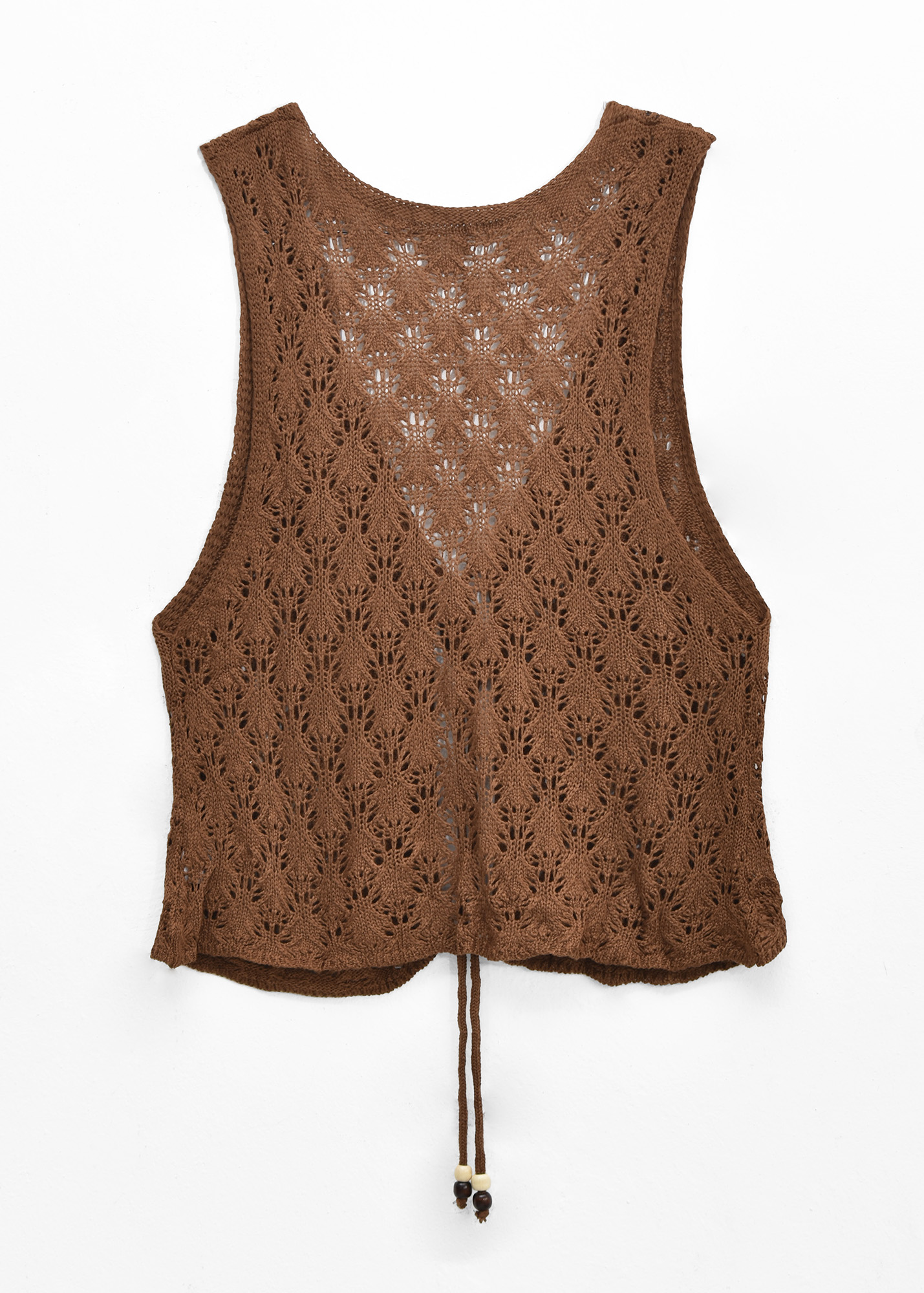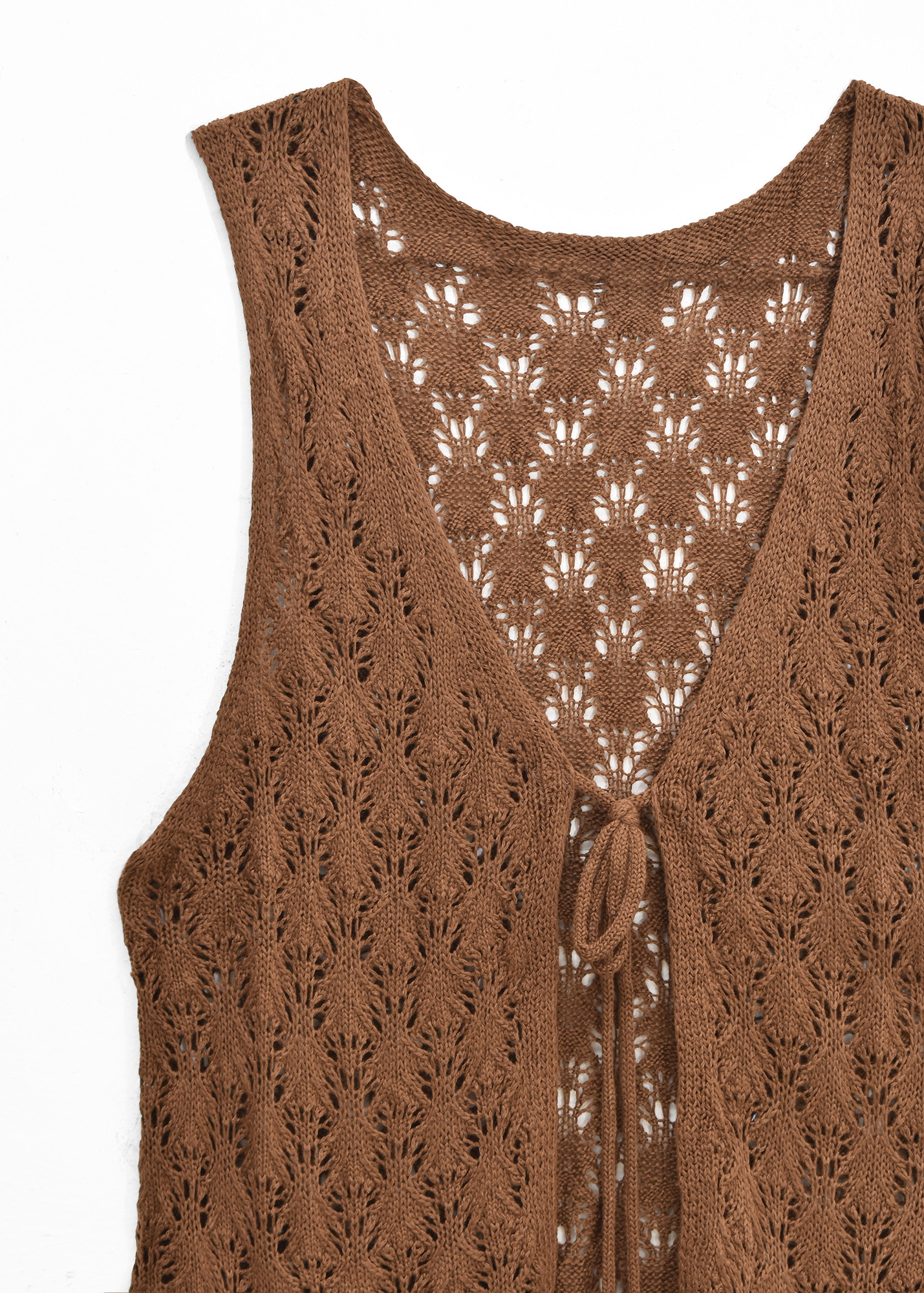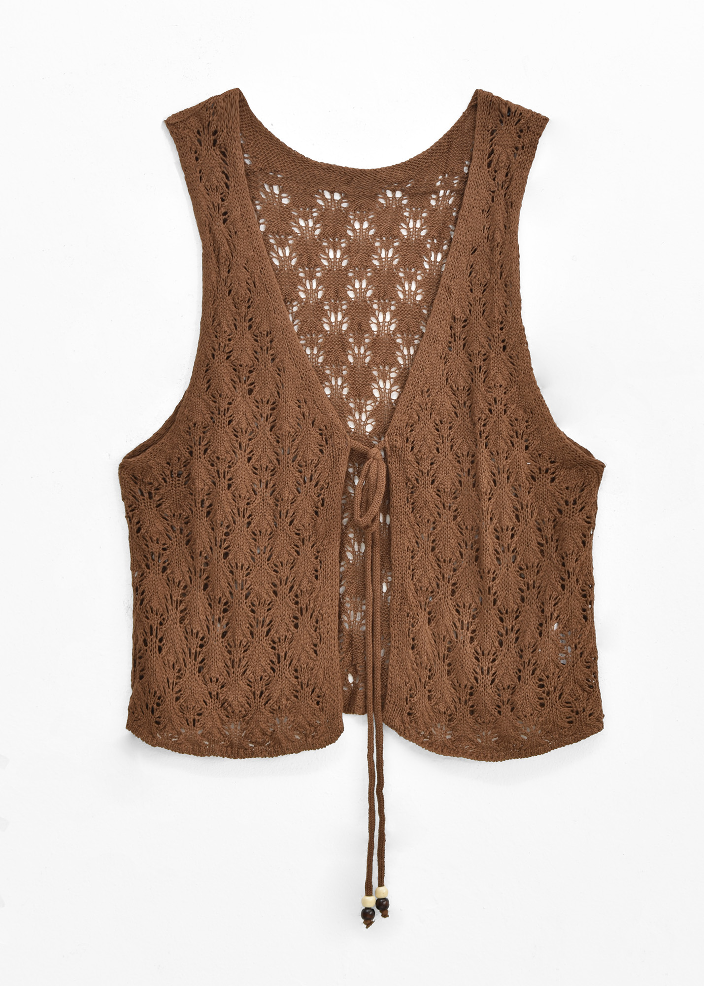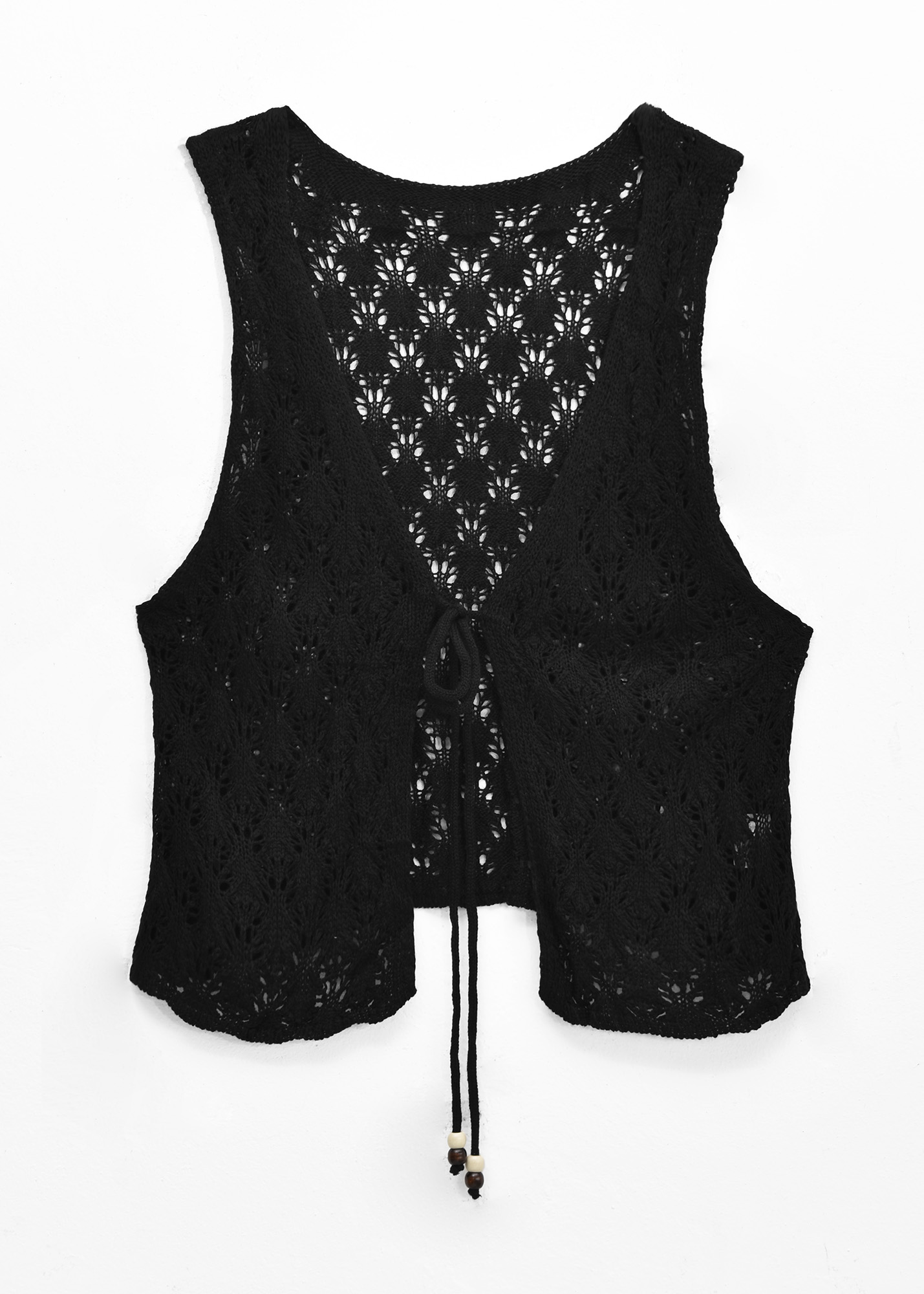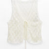 Chaleco de tejido calado, escote en V y lazo para ajustar con detalle de mostacillas