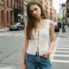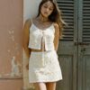 Conjuntos de top/musculosa y skort (pollera + short) pareo, con bordado florales.