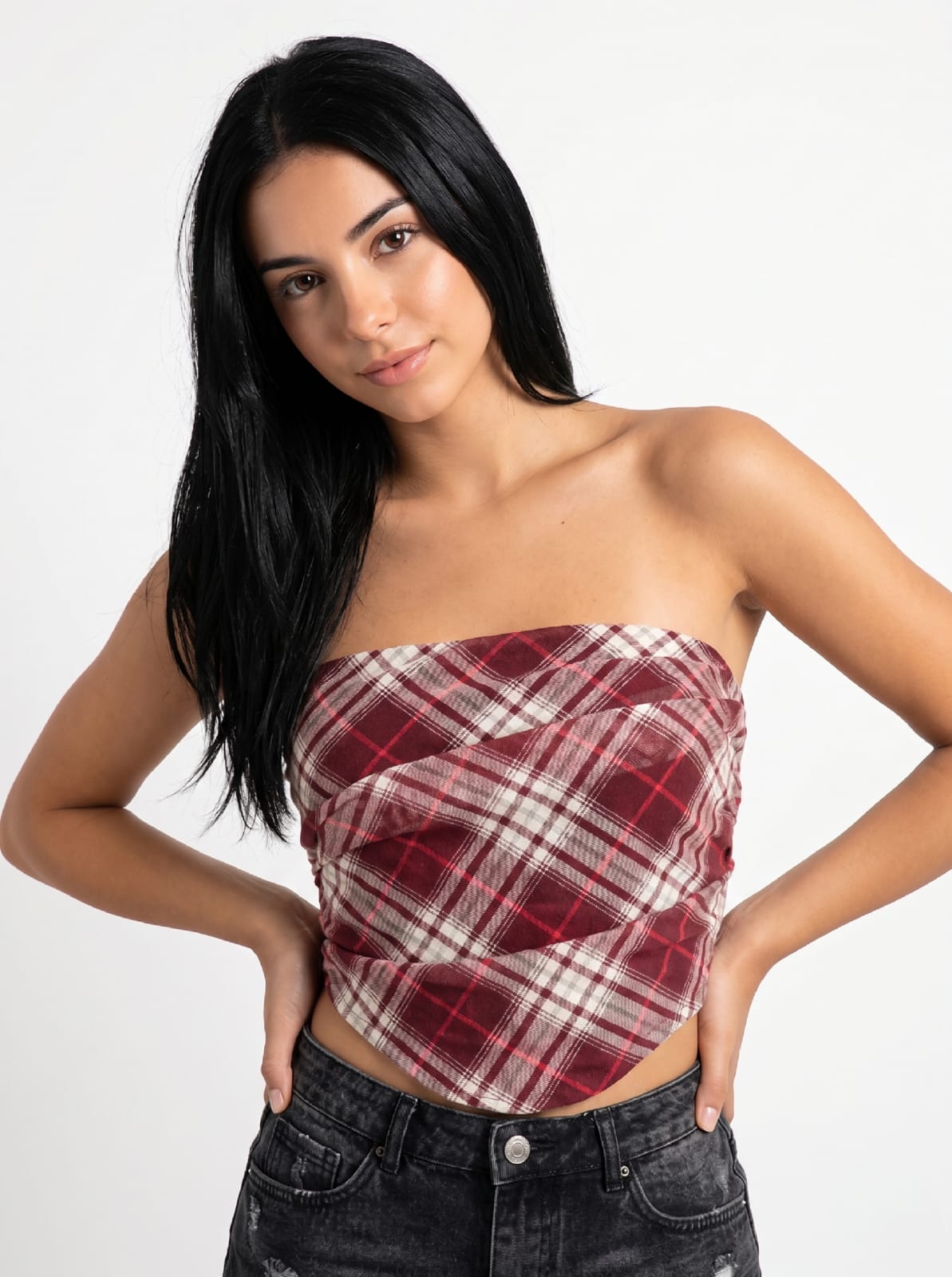 Corset strapless cuadrille de tul con cierre en la parte trasera Composición: 95% poliéster / 5% elastano
