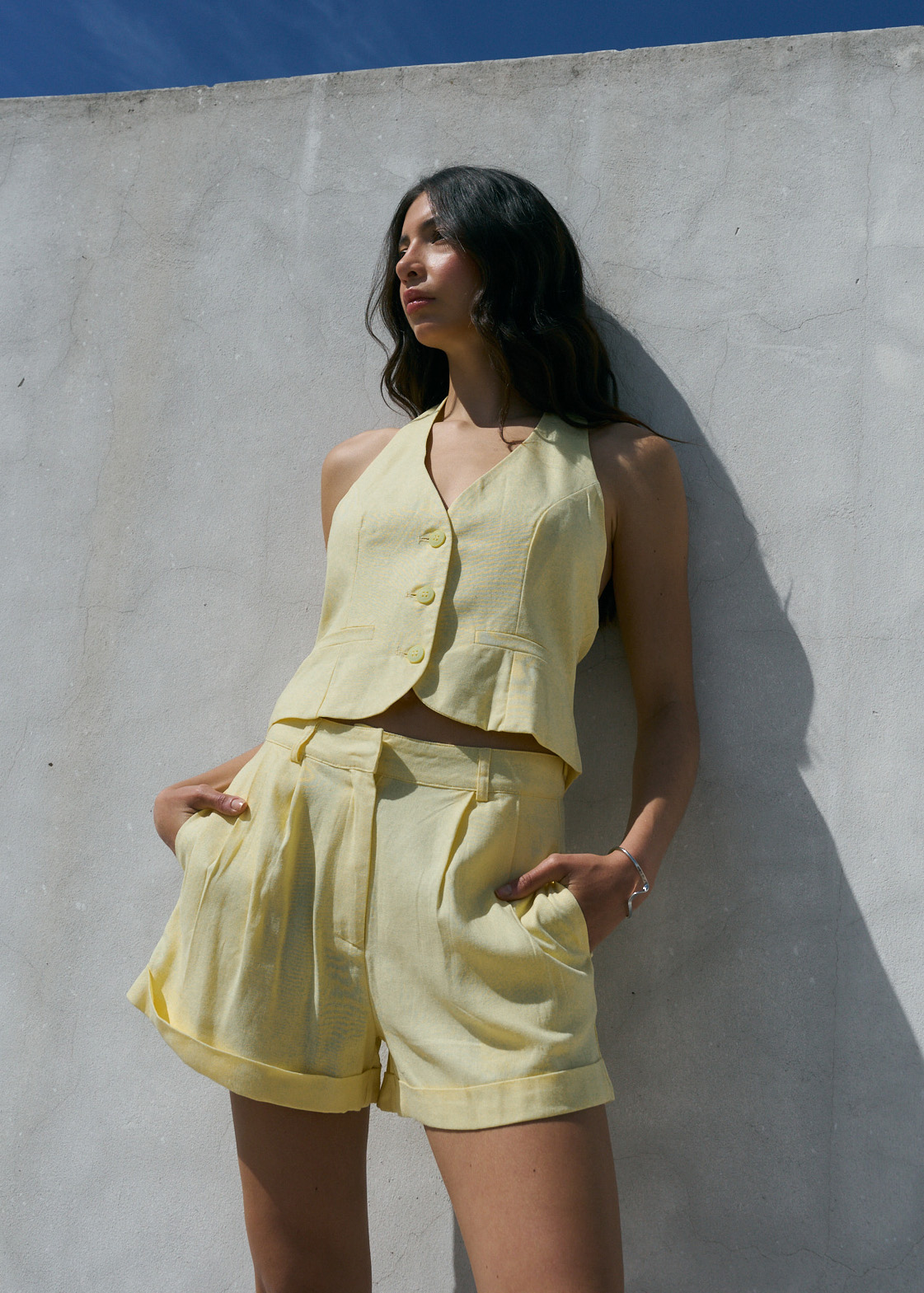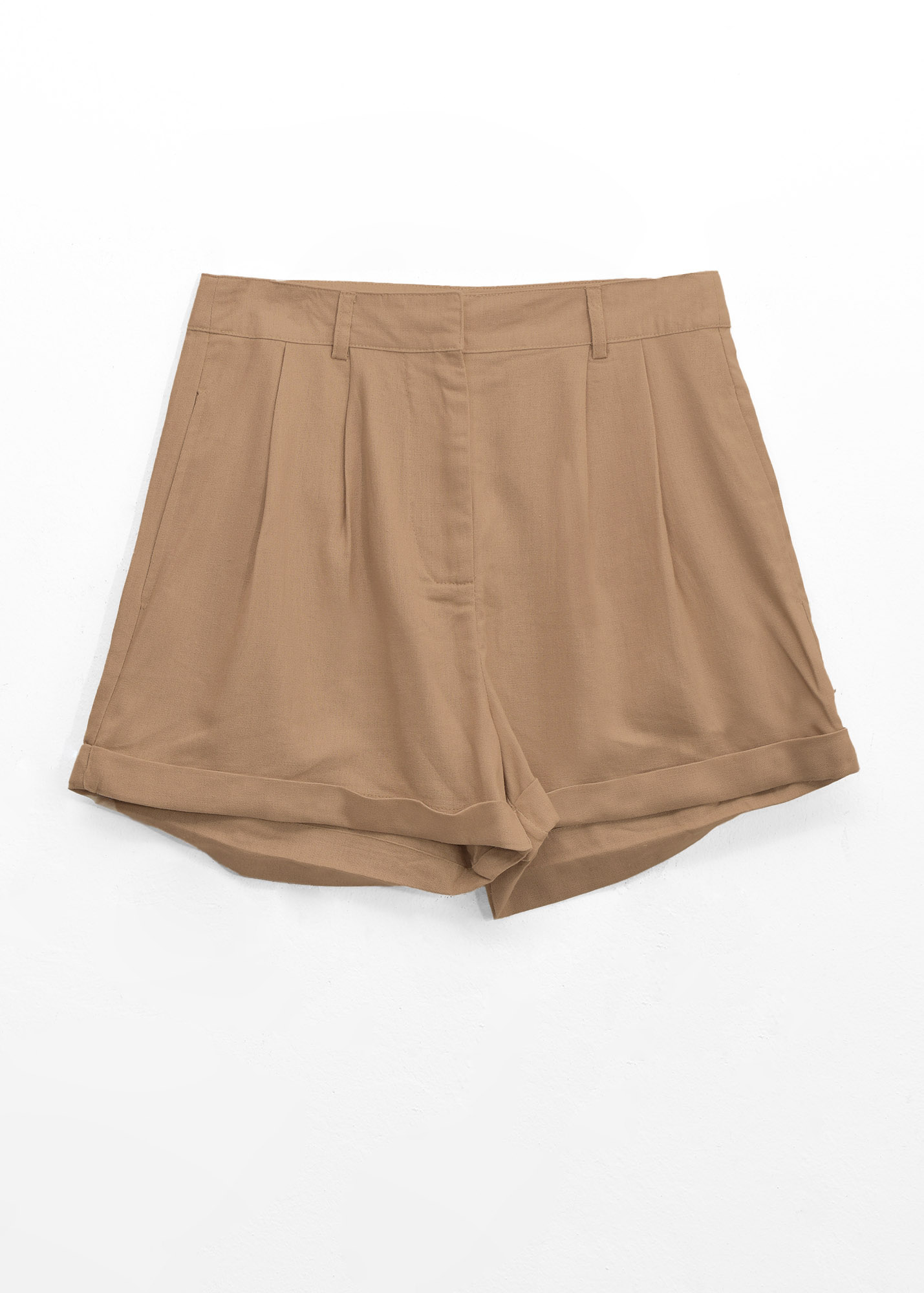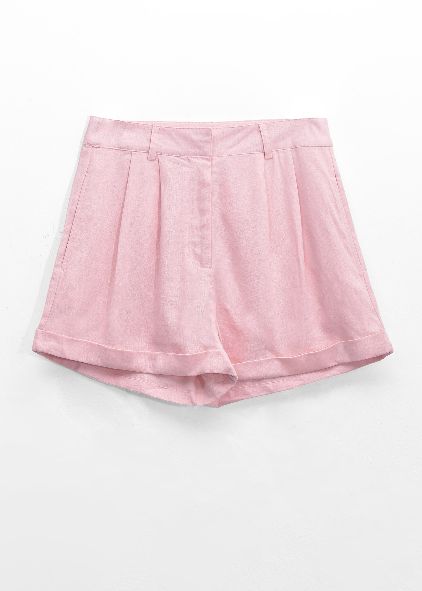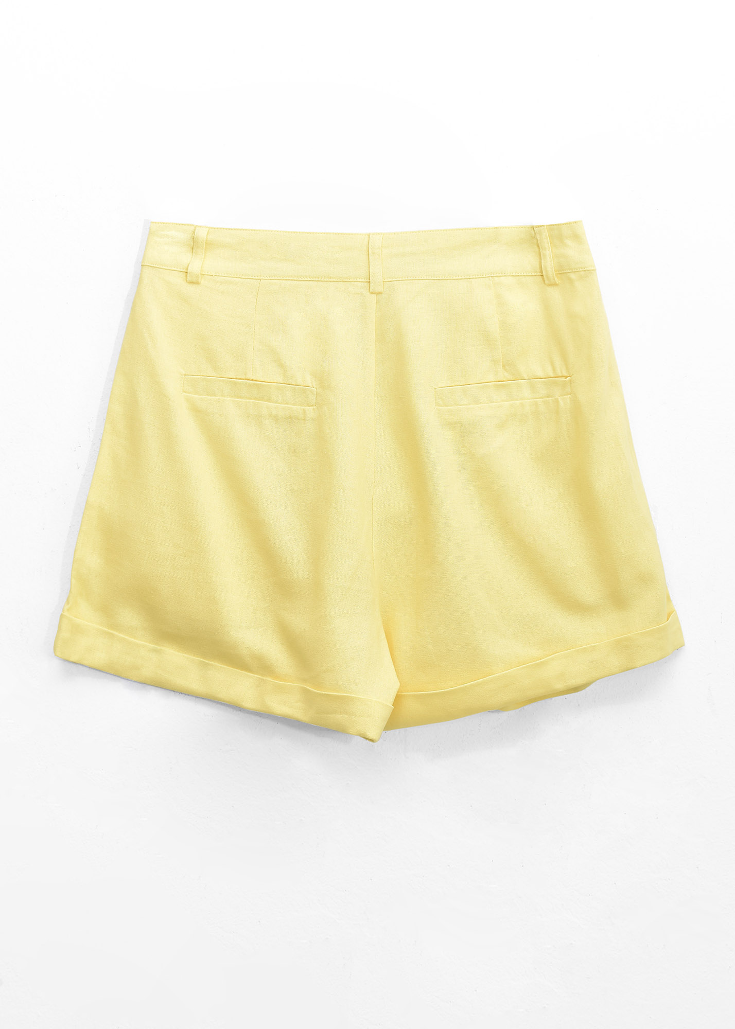 Short de lino con dobladillo, pinzas delanteras y bolsillos reales laterales
