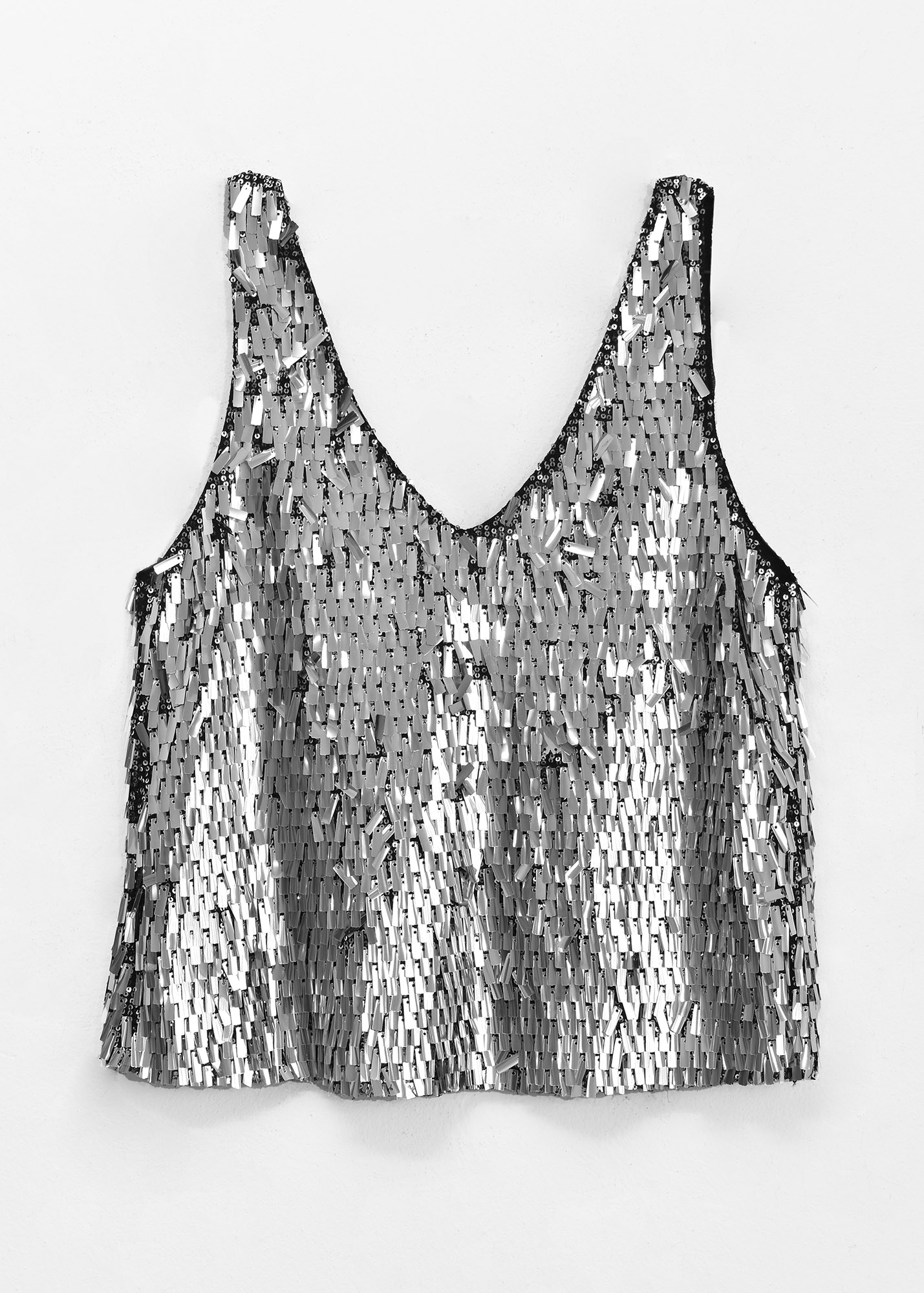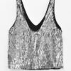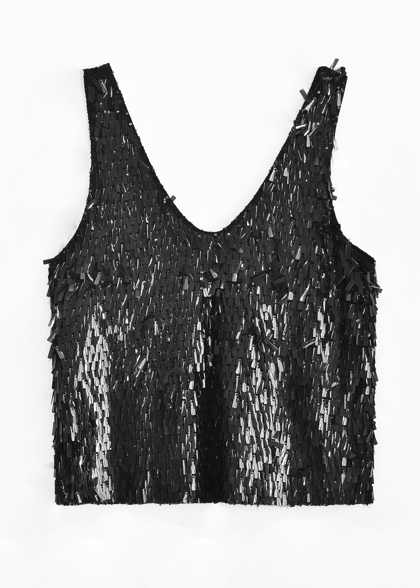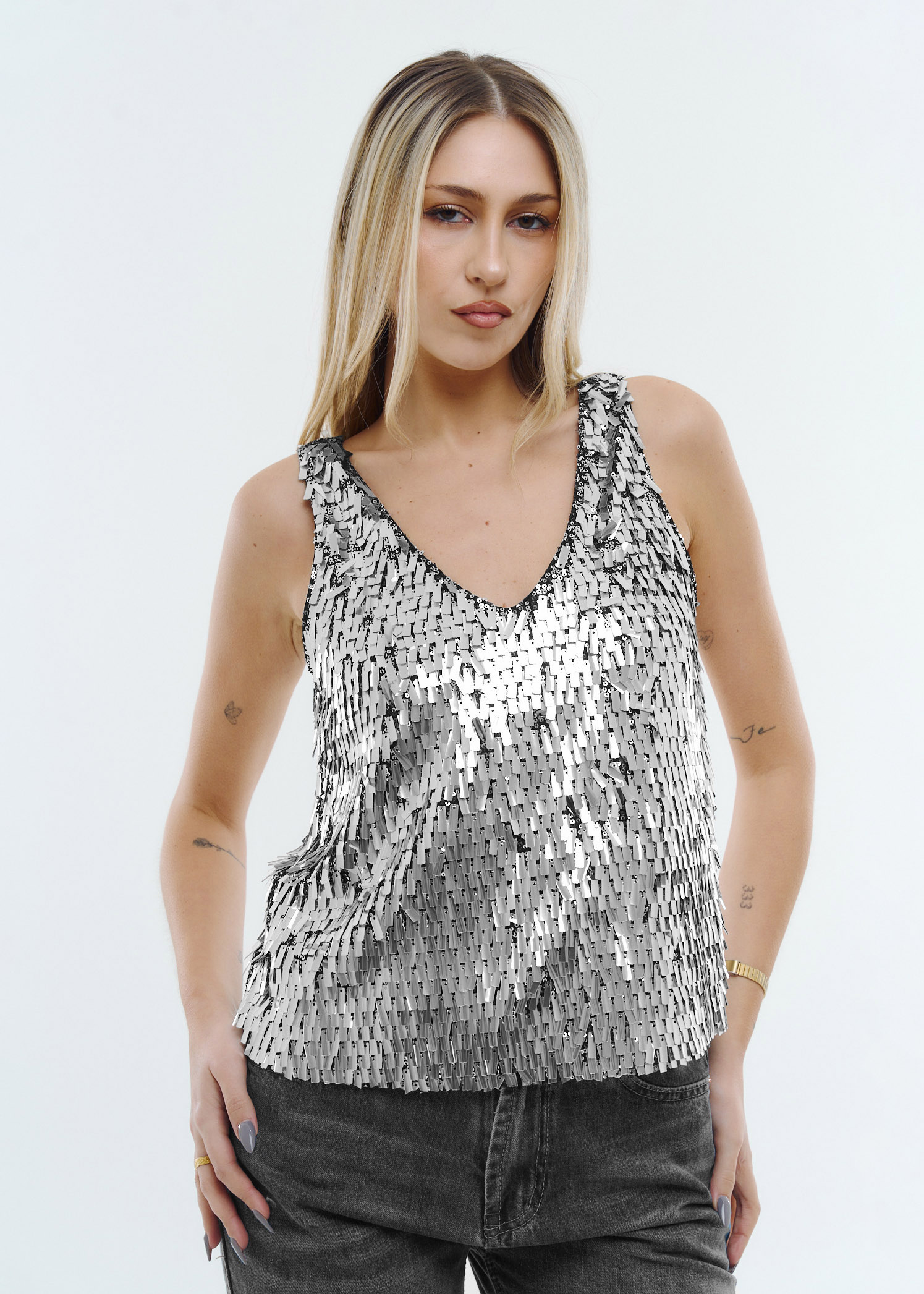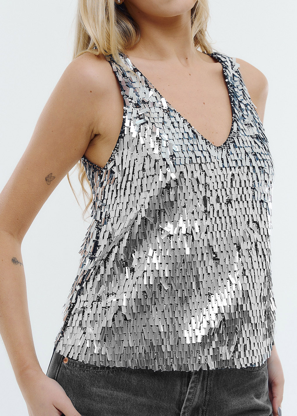 Top lentejuela paillettes rectangulares, con escote en V delantero y trasero // TALLE ÚNICO