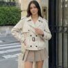 Trench corto con detalle de solapa, viene con cinto regulable e incluye forrería. Tela impermeable Composición: 62% algodón 38% poliéster // forrería: 100% poliéster